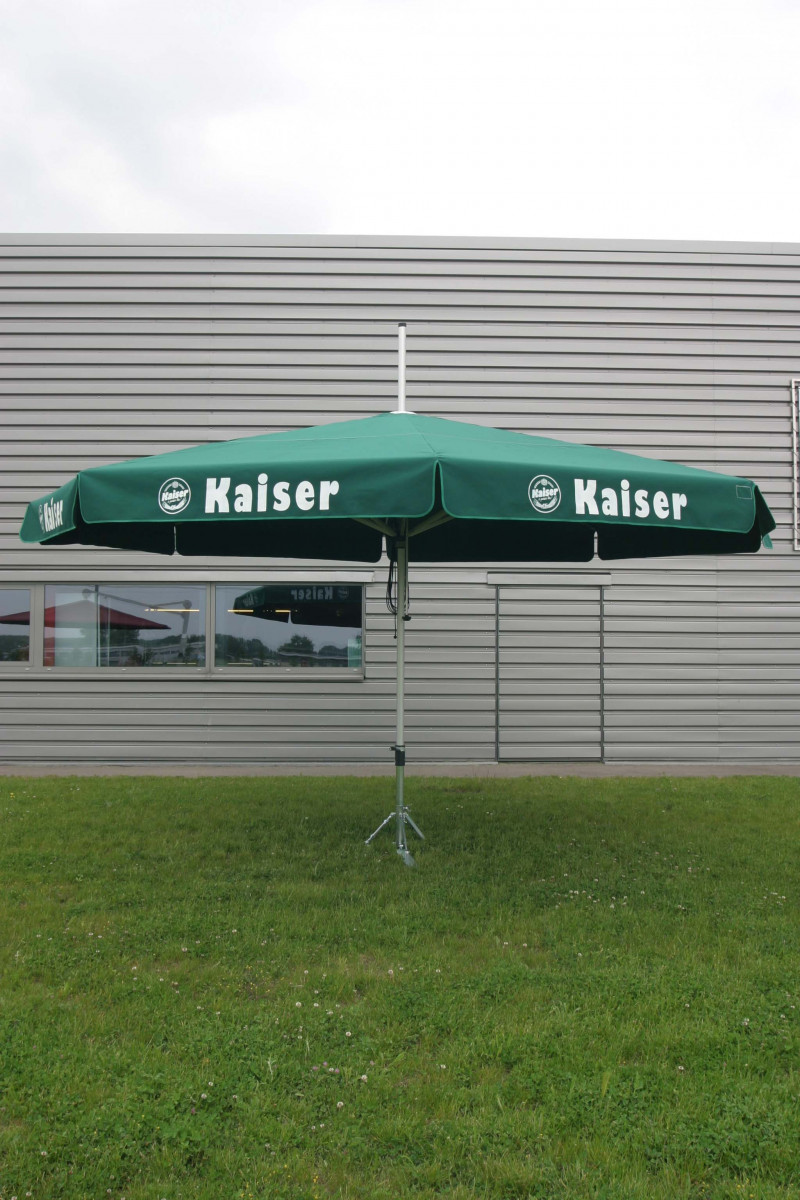 Material: The pole and struts are made of aluminum. Spring shots are made of stainless steel, hot-dip galvanized coil spring. Joint parts made of glass fiber reinforced plastic. Protective corner made of PVC, leather roof cap with plastic protective cap. Tarpaulin made of acrylic is available. It can be individually designed with a Print on the flounce and on the roofing.