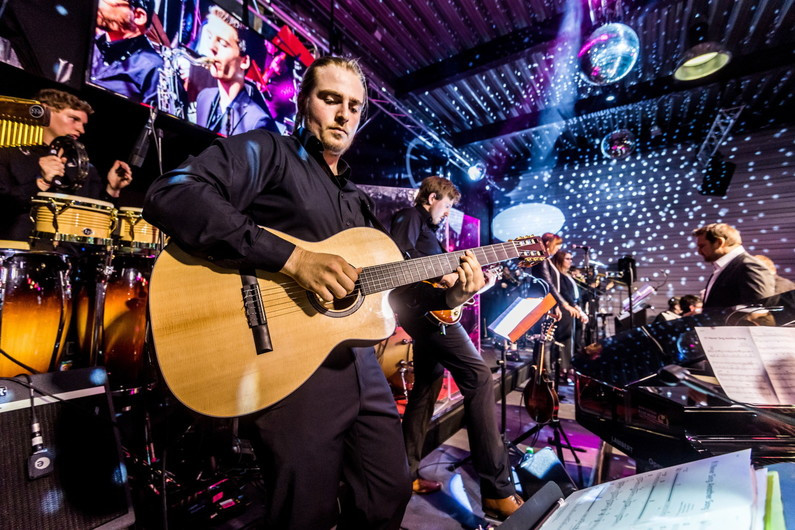 Oder: wie blickt das ca. 30-köpfige Ensemble auf das Schaffenswerk des 2014 unerwartet verstorbenen Chansonniers, Komponisten und Sänger. Vorbild ist dabei ganz klar die Pepe Lienhard BigBand, unverzichtbare Begleitband von Udo Jürgens seit 1977. Allerdings wird die Pepe Lienhard Besetzung durch einen vollen BigBand Bläsersatz (also 4 trp, 4 pos, 5 saxe) erweitert (Pepe Lienhard spielte üblicherweise mit 6 Bläsern) – unverändert bleibt die Rhythmusgruppe (2 keys, 2 git, dr, perc, bass), 2 Backgroundsängerinnen (Julia Wiesberg und Sarah Rudolf) und ein Streicherensemble (Pop-Art String Quartet). Unangetasted bleiben aber auch die Udo Jürgens Tonarten sowie die Arrangements, die so nah wie möglich am Original bleiben, allerdings durch die verstärkte Bläser-Section mehr Druck erzeugen werden.