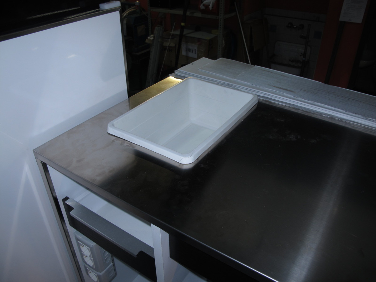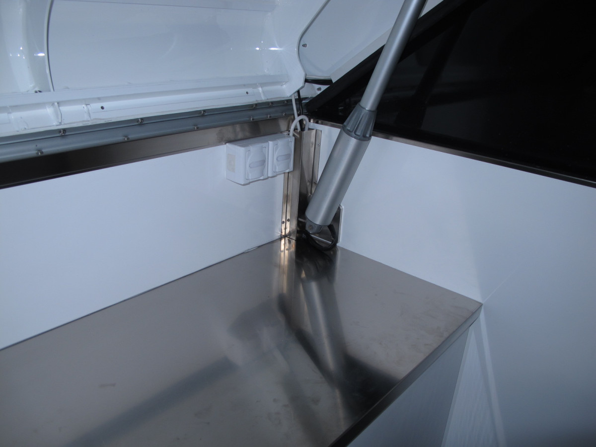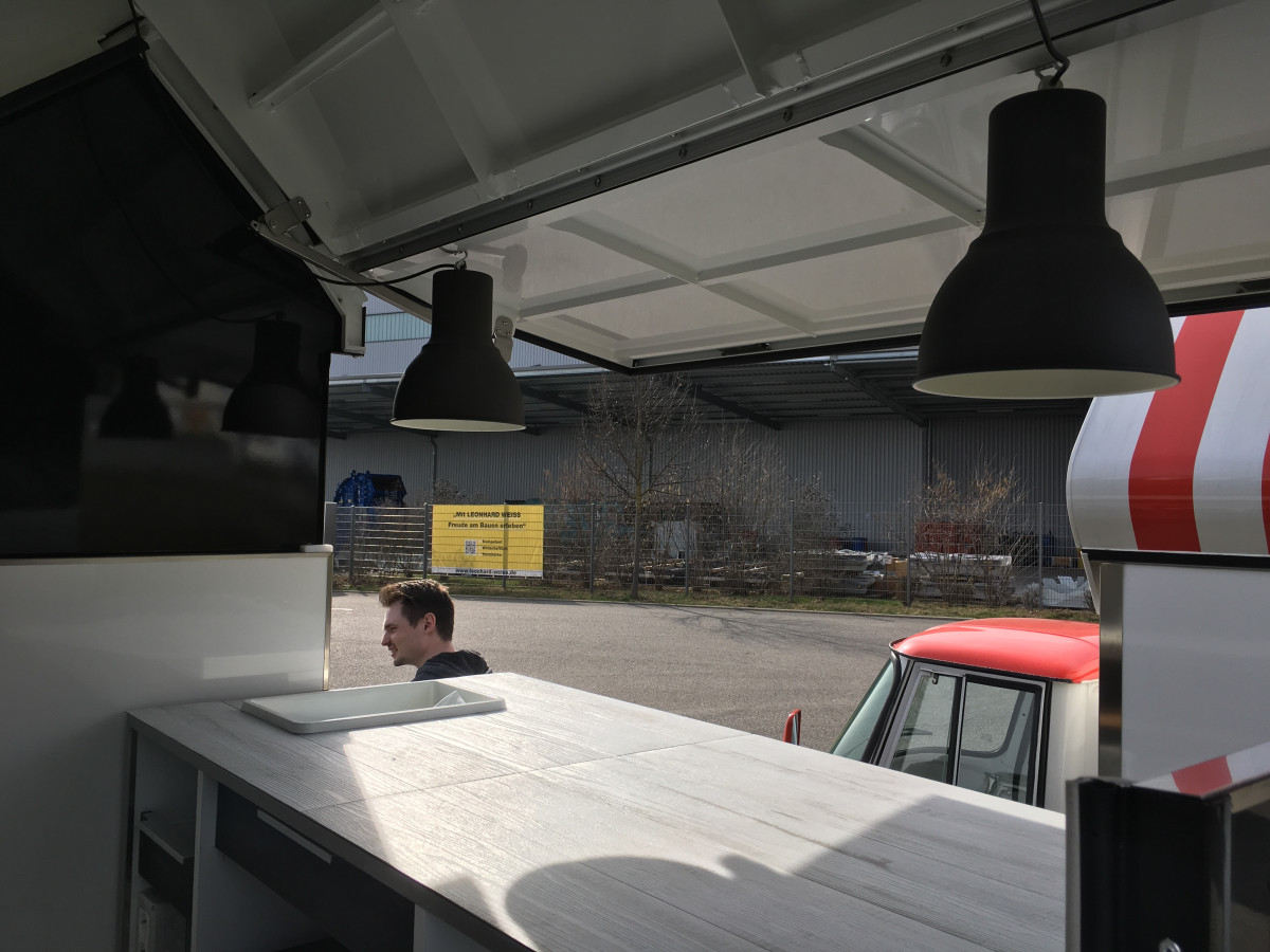 Ausstattung: - Motor: Diesel 400cc - 8PS (2kW) - Designpaket Vintage - Strom und Licht - elektr. Schwebeklappe in FR rechts - Arbeitstheke Rückwand mit Edelstahl belegt - Schiebeverkaufstheke L=1600mm, T=700mm, H=790mm - Hygieneeinheit mit Edelstahlspüle, Warmwasser über elektr. boiler - Wein- / Sektglas Hängeregal an der Schwebeklappe