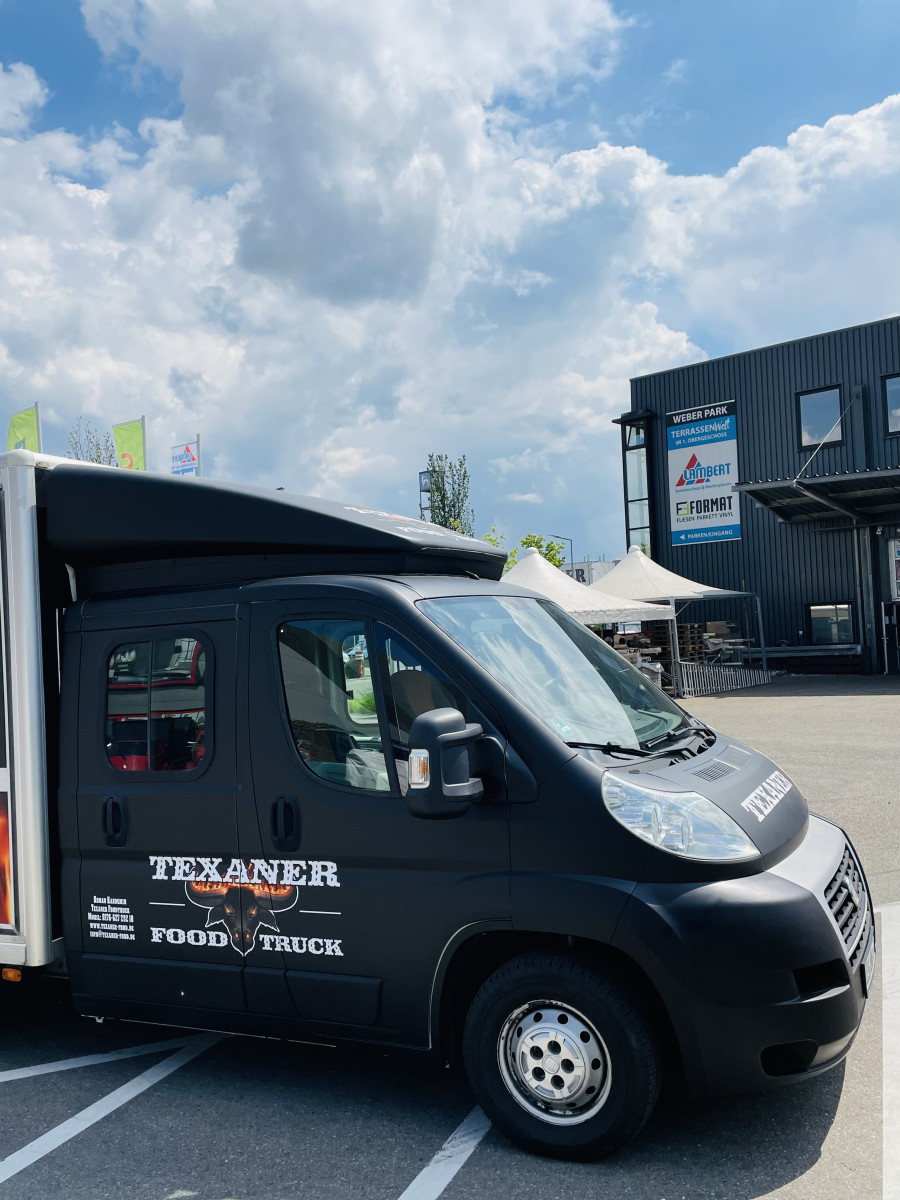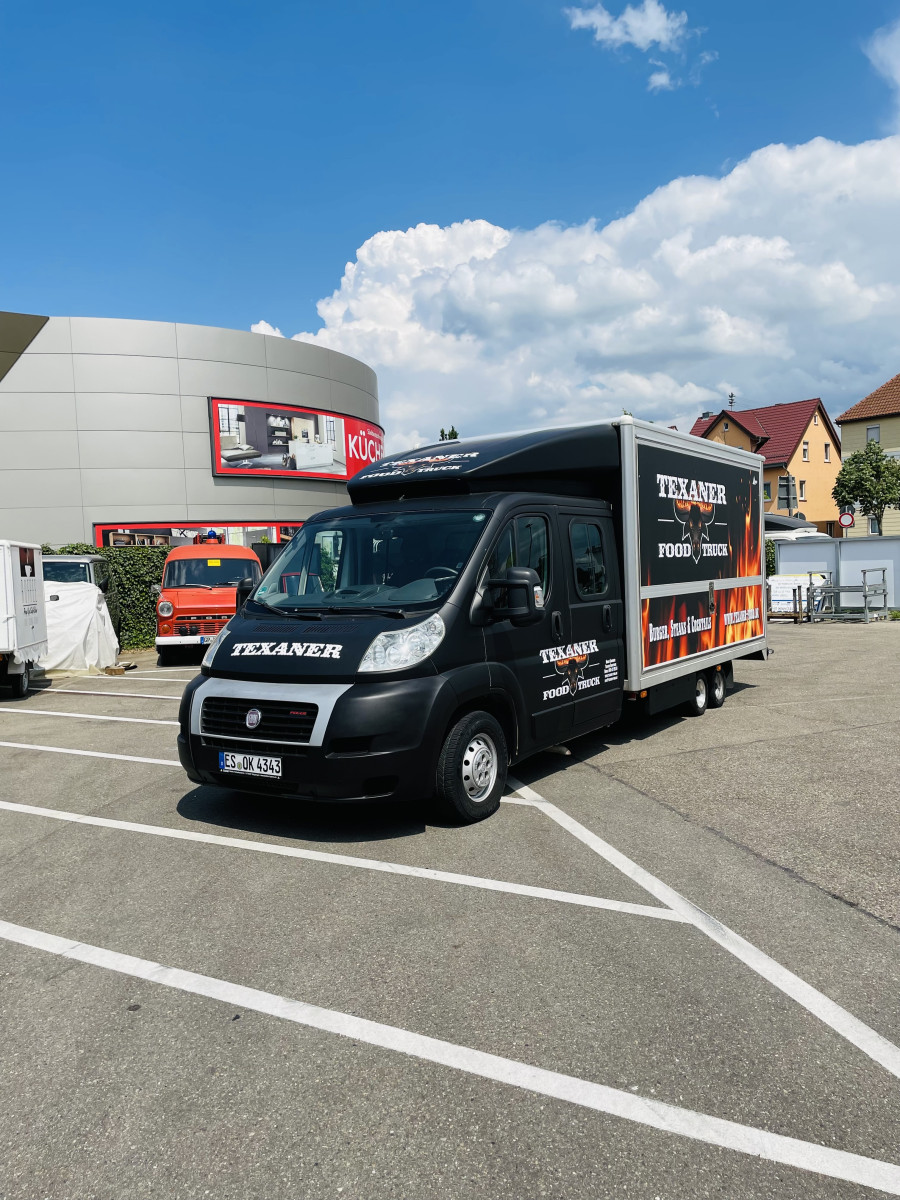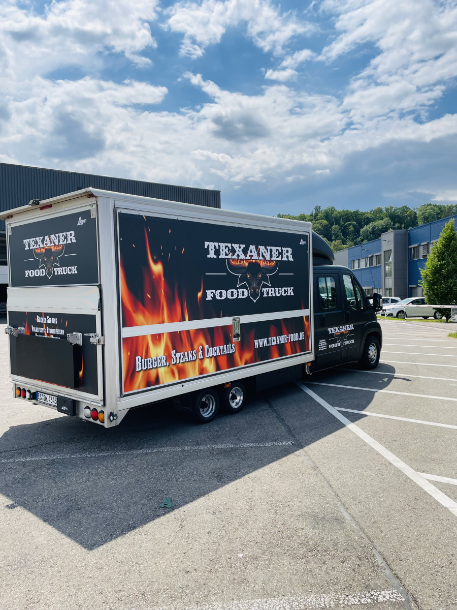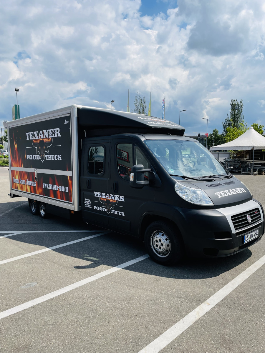 Fahrzeug ist Außen foliert mit "Texanerr Foodruck", die Werbung ist noch für die nächsten 10 Jahre patentiert und ist im Preis imbegriffen.