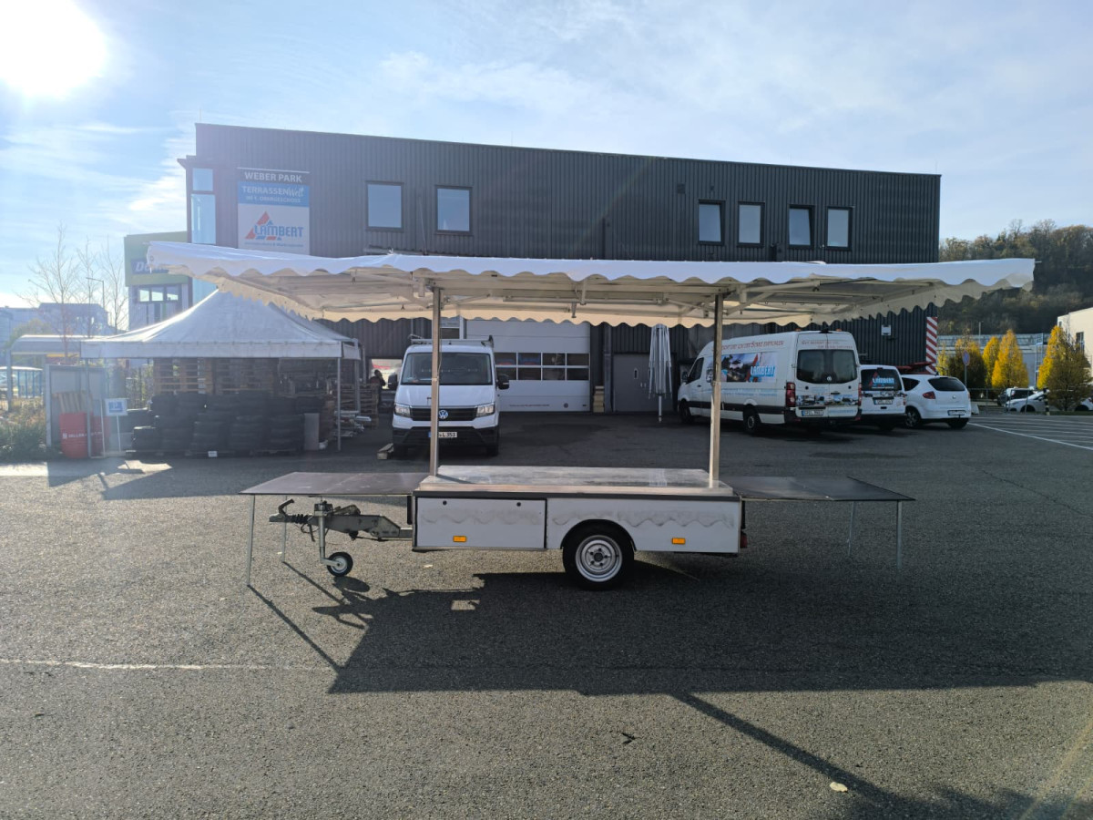 Ausstattung: Strom und Licht, Kontaktkühlplatte ohne Rand 2,3 x 1,1m, Waschbecken Ausschwenkbar mit Heizstab und Wasserpumpe, Achsstoßdämpfer für 100km/h, Restauriert in Nov. 2025 (Neue Dachplane und teilweise neue Aussenbeschichtung der Klappen)