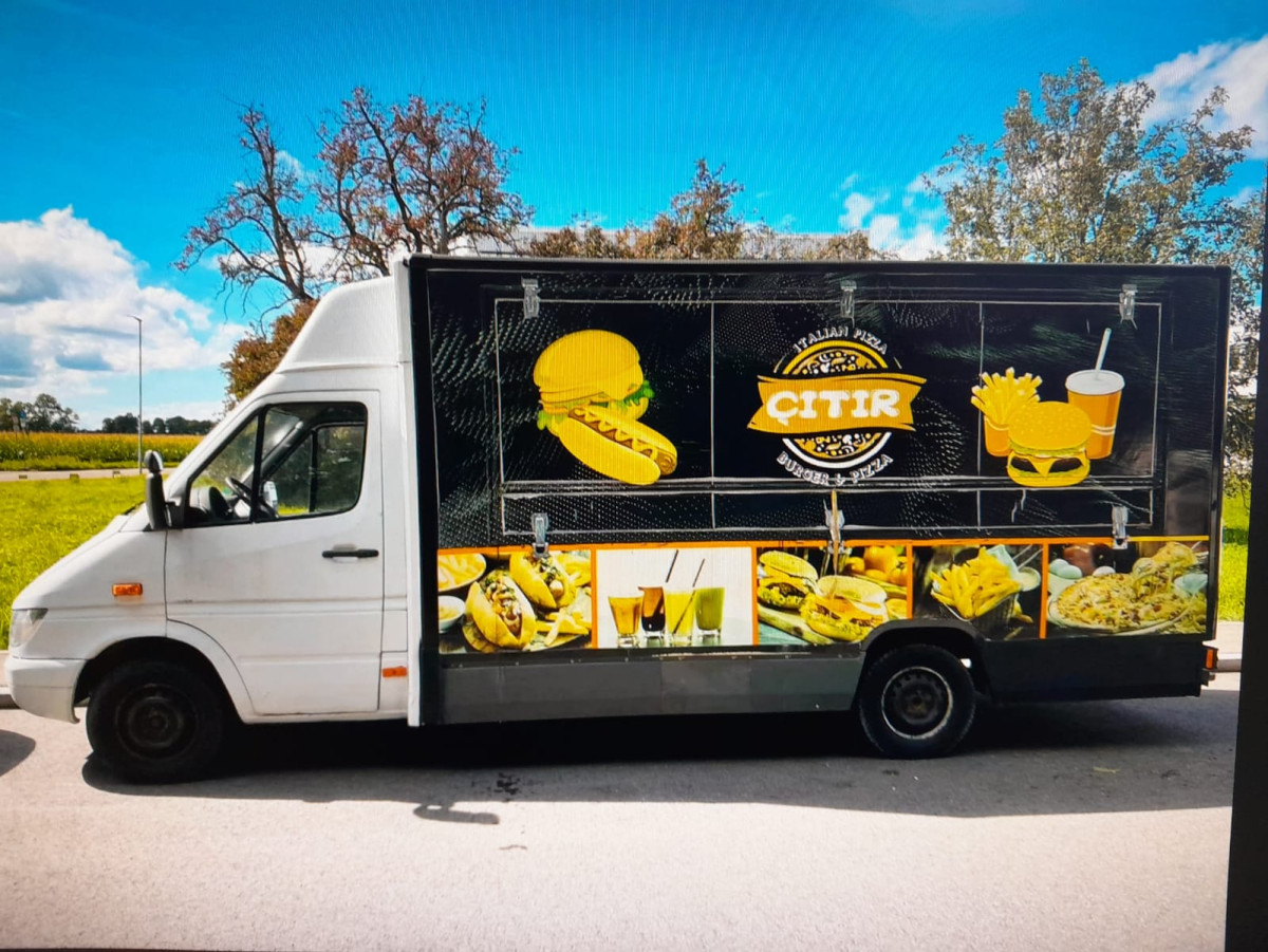 Fahrzeug ist Außen foliert (Burger/PizzalDrinks) und kann weiter genutzt werden.