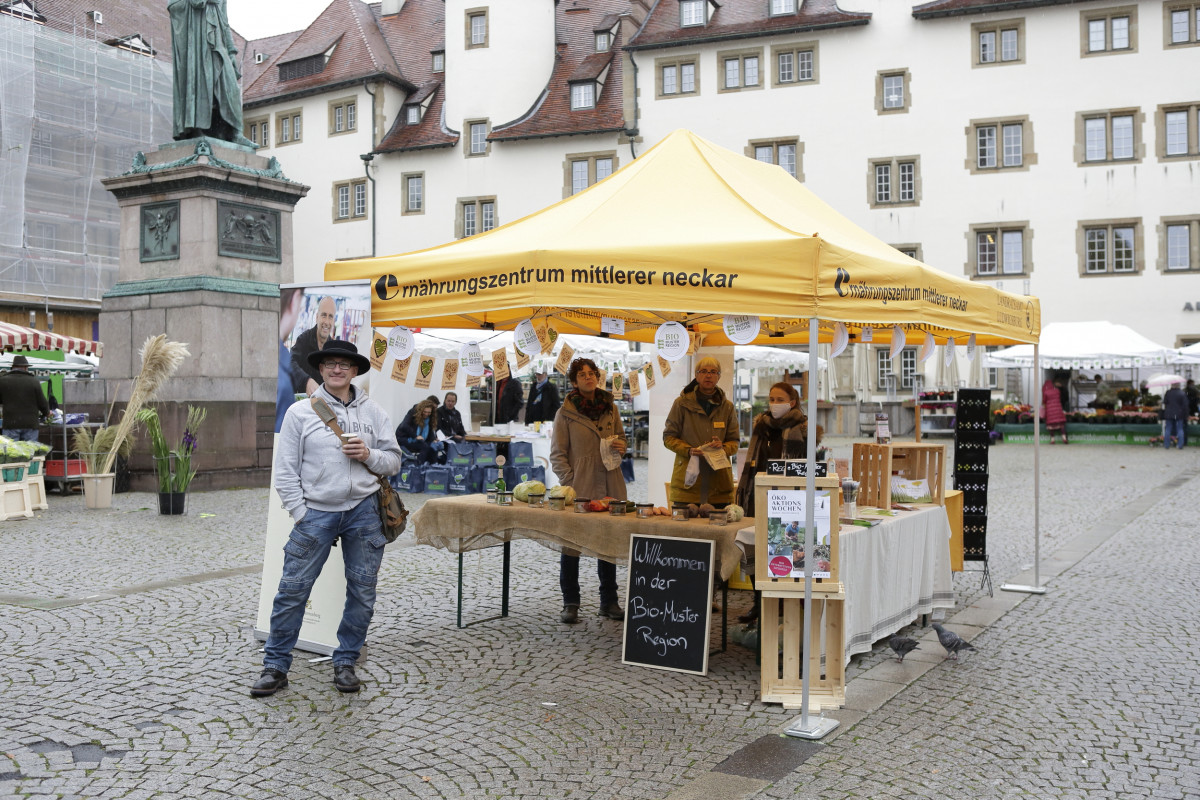 Trotz weiterhin geltender Masken-, Abstands- und Hygieneregeln lassen es sich unsere Markthändler nicht nehmen, weiter den persönlichen Austausch mit ihren Kunden zu pflegen. Wochenmärkte unter freiem Himmel sind nach wie vor Herzensangelegenheit.“ Im Mittelpunkt der Kampagne steht die Verteilung praktischer nachhaltiger Werbemittel wie hochwertige RPET-Tragetaschen und Bio-Baumwollnetze sowie für Kinder Saatpapier-Lesezeichen. Hinzu kommen beliebte Aktionen wie Gewinnspiele und attraktive Händlerangebote. Beim Thema Nachhaltigkeit punkten Wochenmärkte seit jeher im Vergleich zu anderen Einkaufsmöglichkeiten. Jörn Böttcher: „Es geht uns nicht nur um die Vermeidung von Verpackungen und das Angebot regionaler Produkte. Wir fördern die kleinteilige Wirtschaft vor Ort, sichern deren Arbeitsplätze und nutzen das Potential der Märkte für Erlebnisangebote und gemeinschaftsbildende Projekte außerhalb des Marktgeschehens. Wir stehen damit als einzige Institution in ökologischer, ökonomischer und sozialer Hinsicht für eine gesamtgesellschaftliche Nachhaltigkeit.“ Seit über 700 Jahren das Zentrum der Frische: Auf dem Wochenmarkt Schillerplatz an der Stuttgarter Stiftskirche bieten 25 Händler dreimal in der Woche ihre Produkte an. Immer parallel dazu findet mit 35 Händlern der Wochenmarkt auf dem Marktplatz vor dem Rathaus statt. Die Bürgerinnen und Bürger finden somit das komplette Frische-Sortiment regionaler Lebensmittel sowie Blumen und Pflanzen.