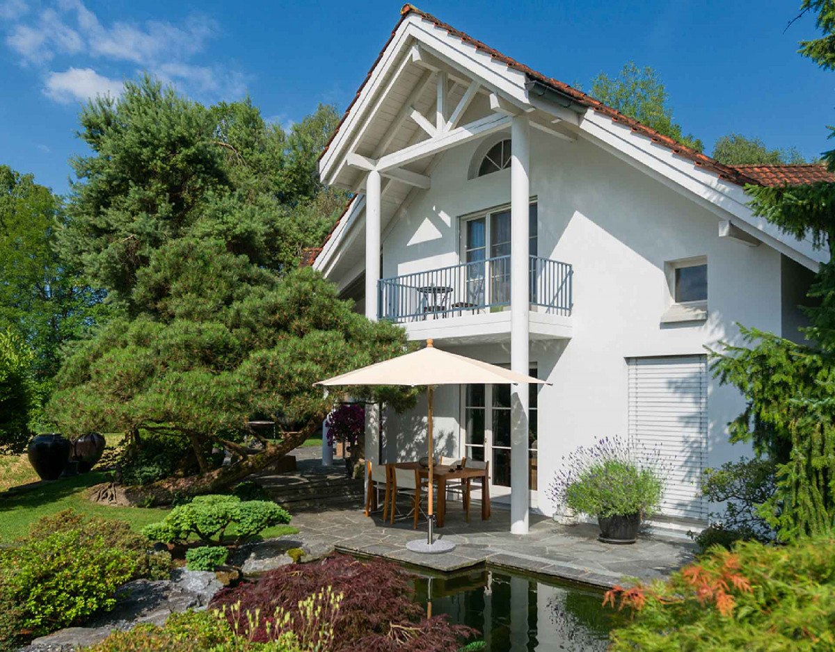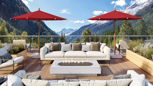 Ausbau: Sie haben die Wahl zwischen einem runden und eckigen Schirmdach und Sie können aus über 70 Stofffarben wählen.